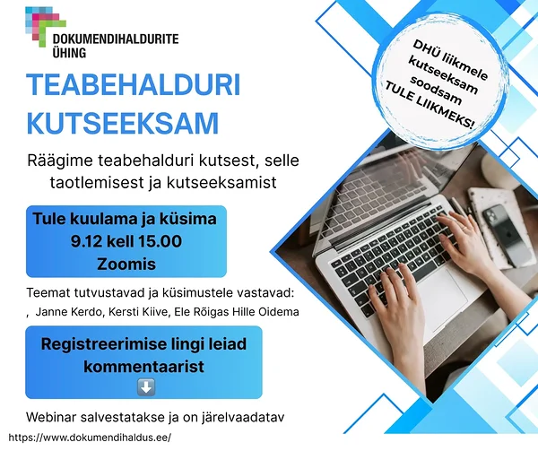 Webinar „Tule teabehalduri kutseeksamile – tee oma tööst nähtav väärtus!“